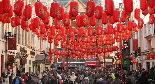 春节期间,英国大报推出“中国周”教人学汉语,英国也处处洋溢着中国春节的气氛。以伦敦为例:2007年的大年初一,30万人(其中绝大部分不是华人)在伦敦特拉法加广场齐声高呼“恭喜发财”,当时的场面令所有华人都感到无比骄傲。舞龙舞狮、爆竹烟花、盛装巡游、文艺表演等欢庆活动令人目不暇接。伦敦警方将相关街区全部变成步行街,持续一整天的庆祝活动盛况空前。这一天伦敦简直是中国化了,乐滋滋的孩子们手里拿着拨浪鼓和气球;喜欢中国美食的男男女女挤在唐人街共进中餐,年轻人纷纷用相机、手机、摄像机留住舞龙舞狮表演的倩影;有些英国人干脆穿上了中国的唐装……伦敦俨然成了一座中国城。此前伦敦已举行过两次春节彩灯游行。2011年有10万人参加了这一活动,其鲜明浓郁的中国文化特色使游行获得巨大的成功。英国的主流社会积极参与和各地传播的中国文化以及英国民众的高度热情,使得近几年中国春节的喜庆气氛在英国迅速蔓延开来。